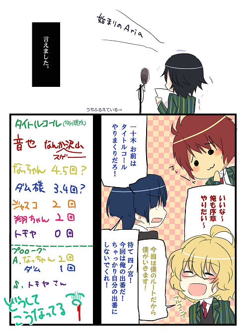 そうそう、聖川様だけライバルだからレンさんのハイセンスなあだ名がないのですが、付くとしたら「料理長」が最有力でしょうかw(お粥の作り方の指導で料理長もよくよく考えればなんかすごいですねw)