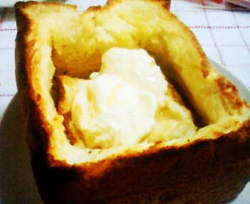 ブレッドナイフなんてないんで包丁でがしがしくりぬいたら、くりぬいた中身がぺったんこにorz