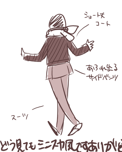 昨日だけれど 夜、駅でこんな格好の人をみた(後姿)。最初はそのはみ出てるスーツにツッコミを入れたい気分だったが見てる間に、これはこれでありなんじゃないかと思うようになってたwスーツの裾がなんかミニスカっぽくなってたw萌えた←どうでもいいが、コートは絶対に私服用のソレだろうと思ってならない。はみでてるし。PR