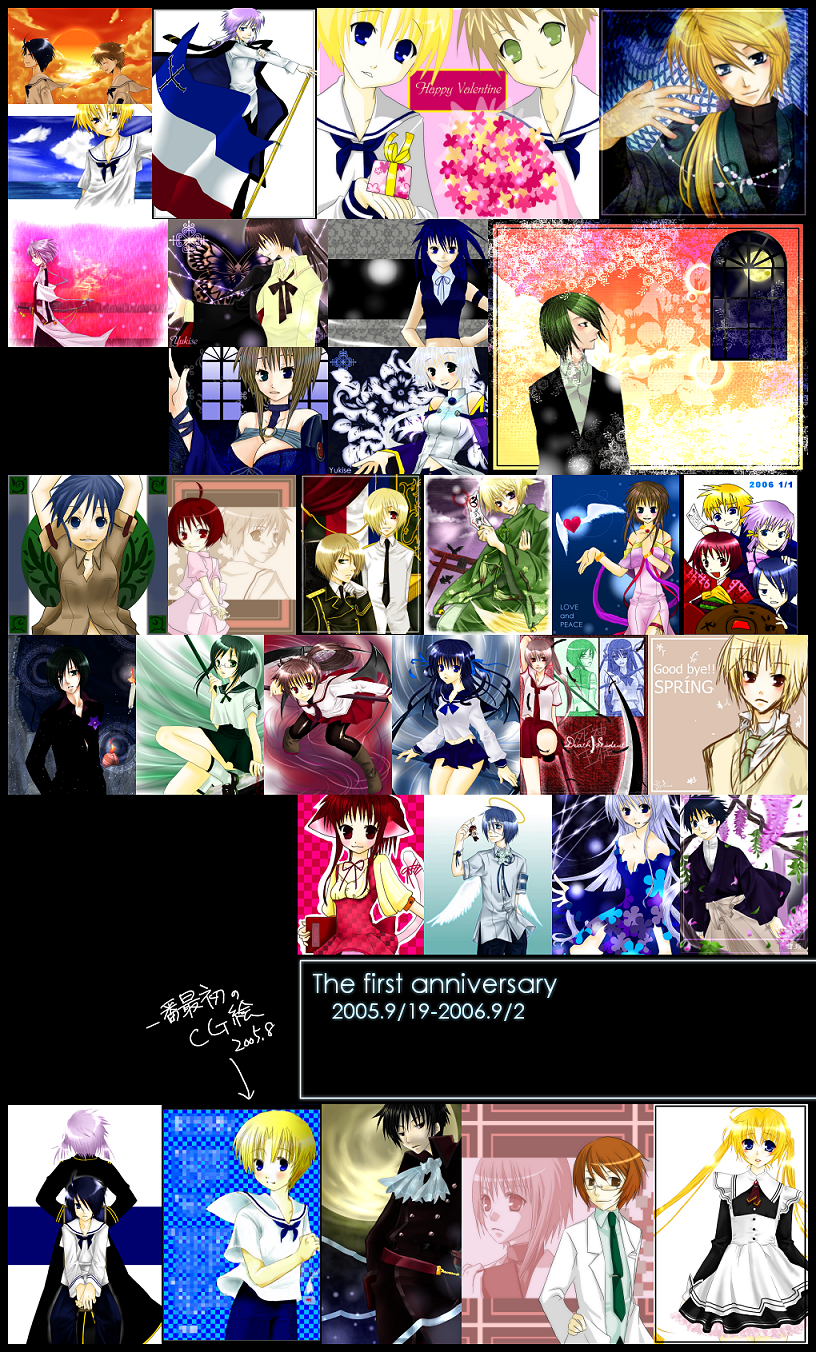 その昔、わたしが投稿サイトに投稿していた時の投稿1周年の集め絵だったりしますw