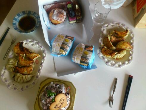 メニューは餃子と月見バーガーとケーキですw