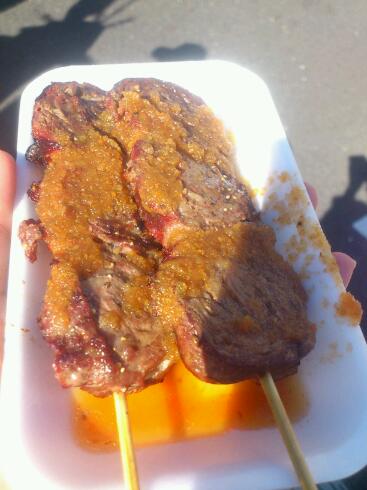 食べたものコンプリート画像を撮ろうと一番最初に食べた牛串を撮りましたが、それ以降はものの見事に撮ることを忘却しました^q^