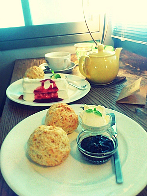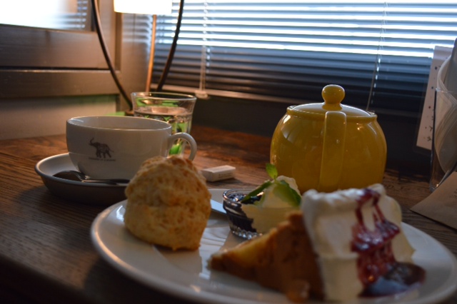 メニュー的にはスコーンセット(手前)とケーキ(シフォン)セット(奥)です。