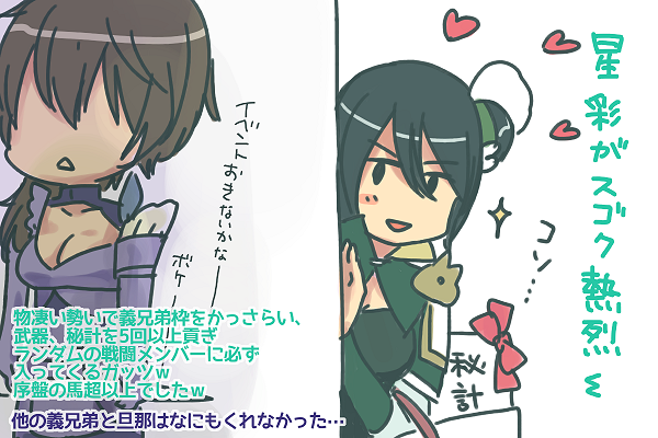 友好度も爆上げで、義兄弟になれるよ!アナウンスも星彩のおかげで出ましたw