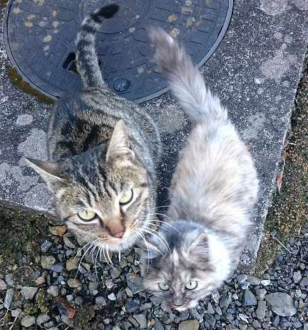 どっちも野良だと思うのですが、トラはなんかちょっとあやしい感じです。人間大好き、抱っこ大好き、膝の上なら何時間だって居られる!!みたいな奴だったので、ひょっとしたら途中まで人間に飼われていた雰囲気。ほかの野良とはちょっと体格が違うし…。
