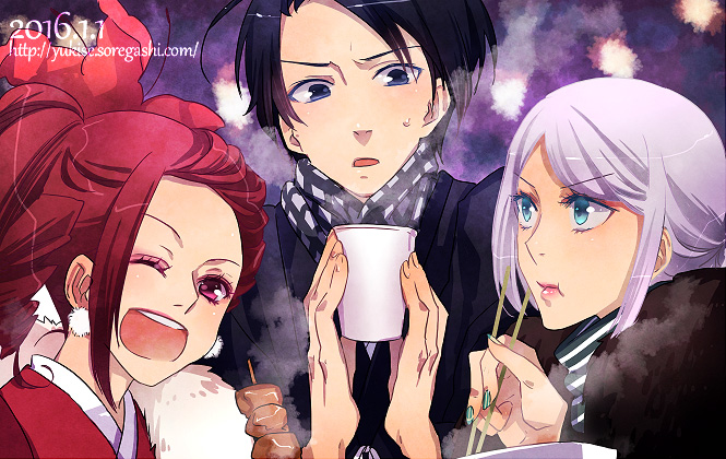 三人なのは以前の正月絵でロド、パト、兄の組み合わせがあったので、ちょっと意識してみたり…w