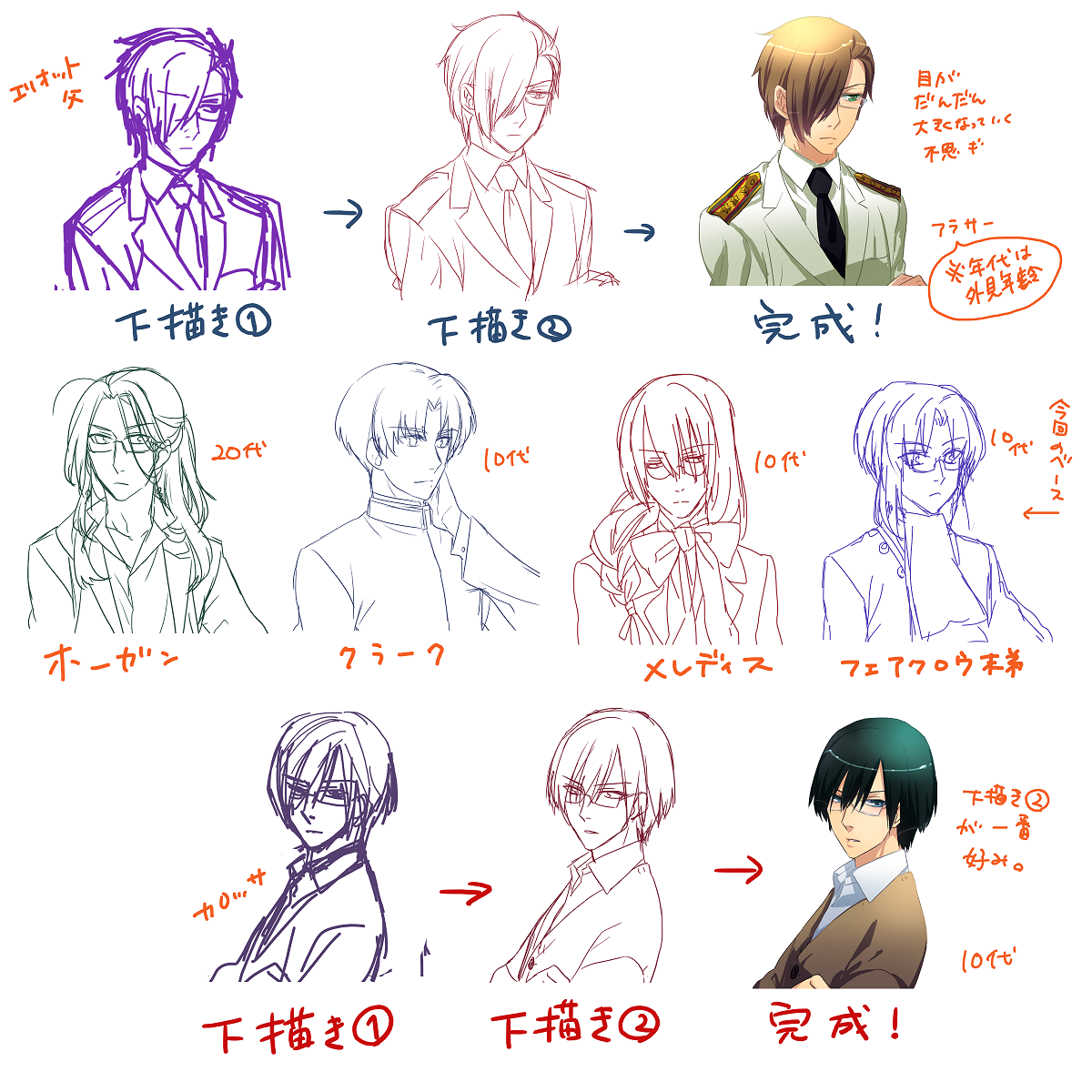 下絵とか過程を載せているので、お分かりかと思うのですが、下絵(②の方)と完成絵が結構違っていたりします;