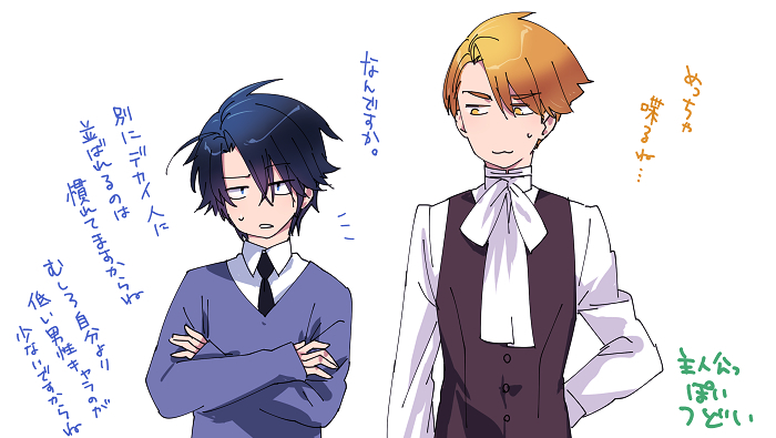 キャンペーン2 ←173 188→予想以上に差が大きかった…!台詞はルイスから読むとなおよし。主人公枠で、分け目一緒だし!青と黄色で反対色でいいかも!と思ったら身長差がエグかったwコートを肩にかけてないのはちょっとしたやさしさ。漫画の方は、地味に増えてます。よくわからない導入から、まだよくわからないプロローグまできました。本編はダイジェスト予定です。PR