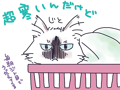 毎朝、ジト目で訴えてきます。背景に「寒い」の二文字が見える…。