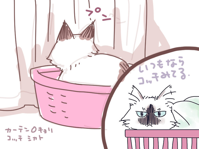 ちょっと足らなかったみたいで、出かけるときにはいじけてカーテン0距離でした。
