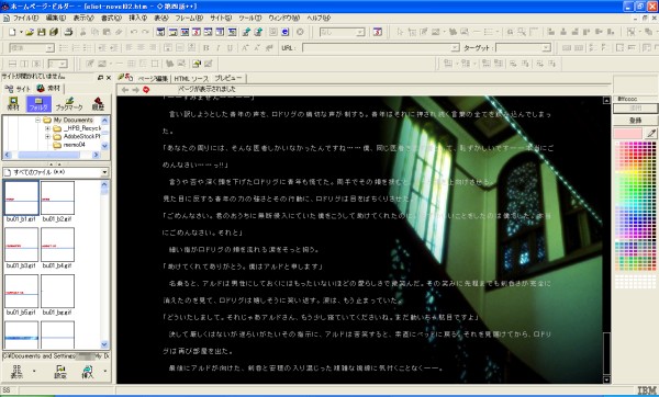 いただいた!! 今日から学校です。早速英語110分のテストは辛かったです。というか、久々に日本語と戯れたので、ブランクが…。あと今日はお友達の風亜さんから誕生日リクの水兵さん小説を頂きました!!許可も頂いたので、現在up用に平手打ち中です!(平手打ち?)↑その作業現場。(ホームページビルダー)こんな感じな雰囲気に仕上がる予定です**洋館の写真素材を使用させていただいてるのですが、何やらサスペンスな臭いがしますね;ホラーもまた然り;出来次第サイトupします~*内容は超よかったですvvPR