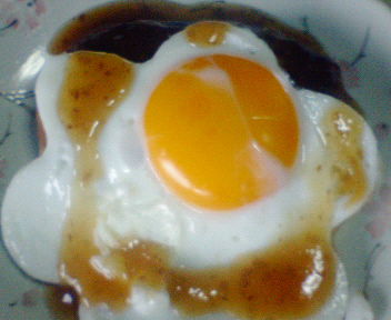 フライパンには黄身だけ火が通らない、卵…。