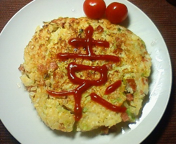 ってそんなことよりも、ケチャップで何を書くか悩んでましたw