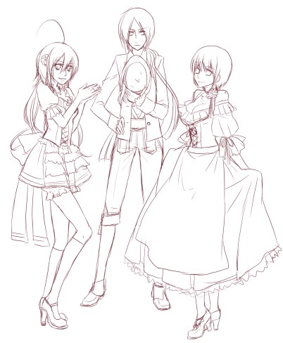 描くどー!! だいぶ描いてなかったので、描いてみたかったもとい、ペンの進むがままいきましたっ もやし○ん新刊読んで、バイエルン地方ヤバイ!!超ヤバイ!! 民族衣装超ヤバイ!!ということで^^ 創作からのキャラ選なんですが;そして下描き;; 個人的に3人組という図式が結構好きです。バランスがいい気が… とりあえず、清書と配色まではおわしたいですPR