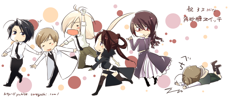 祝*3万打 昨日、3万打を迎えました!!!ありがとうございます!大体、1年1万打ペースなので今年も無事にといった感じです^^ここにいらしてくださった皆様に感謝をv3万打記念*お持ち帰り可ですが…正直、手抜き絵なのであまりお勧めできません^^;(いらっしゃらないかと思いますが)サイトの背景もこれです。人選は自キャラの主要格3+3です。3周年記念は何か描くぞ…!PR