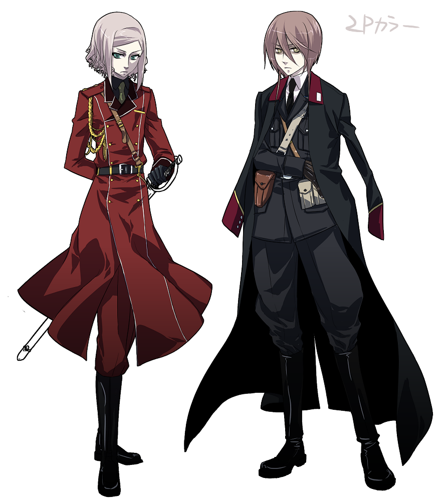 左の配色はいつかやってみたかった紅軍服を実践してみました。なんだかこのデザインに紅ってすんごい微妙…;あと黒シャツもやってみたかったのでついでにw